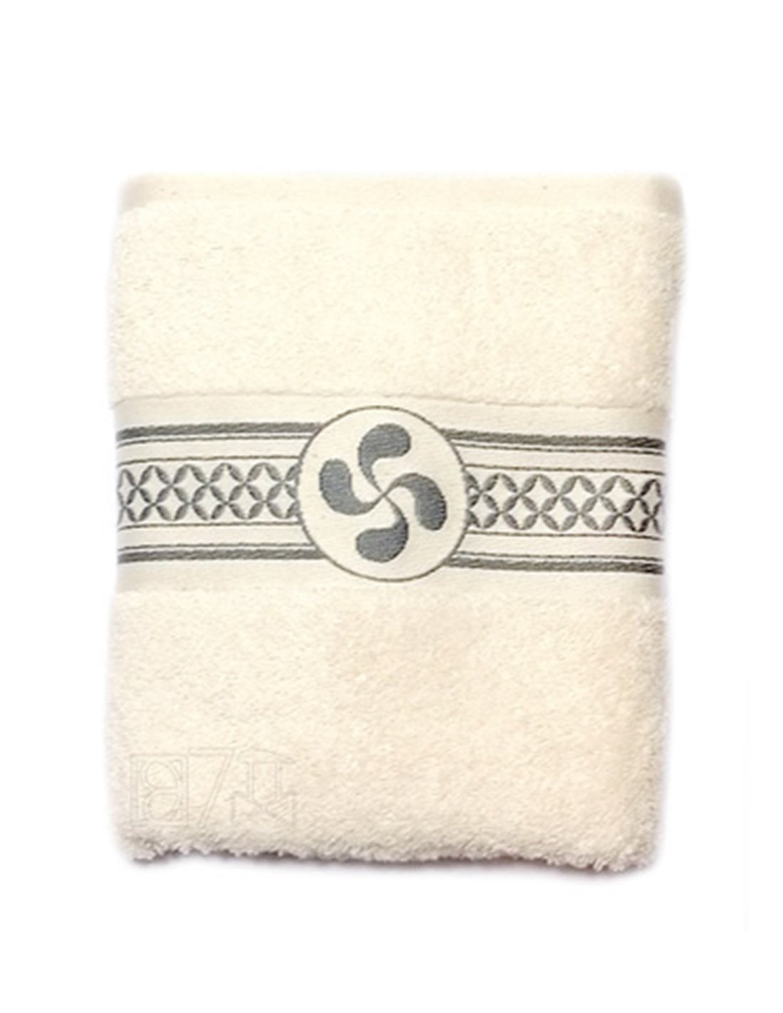 Serviette de toilette 50 x 100 cm écru croix basque grise - LILITAN